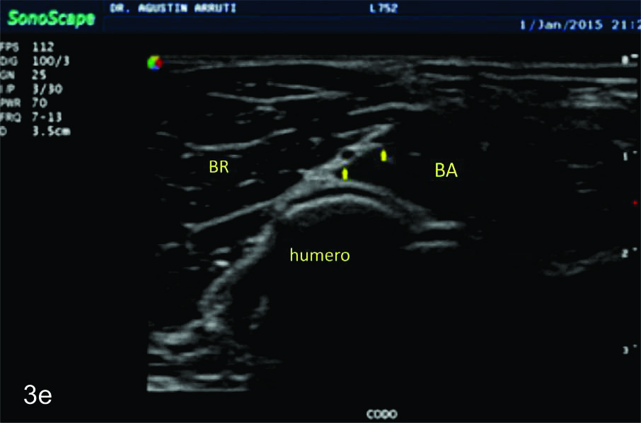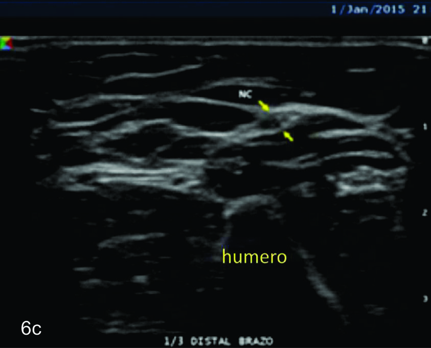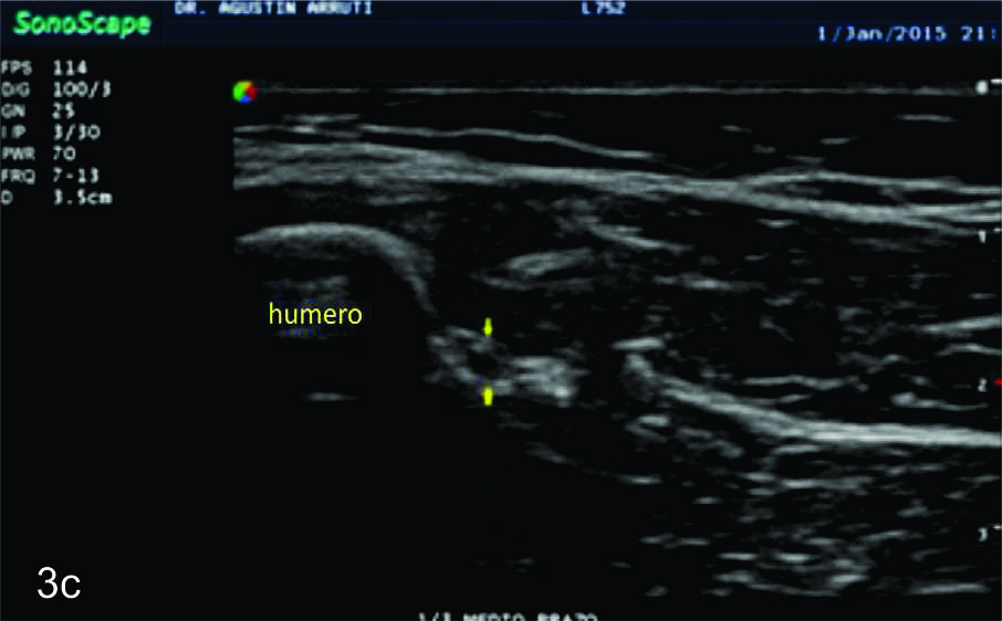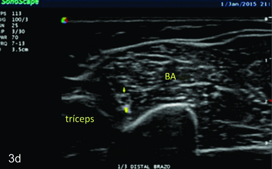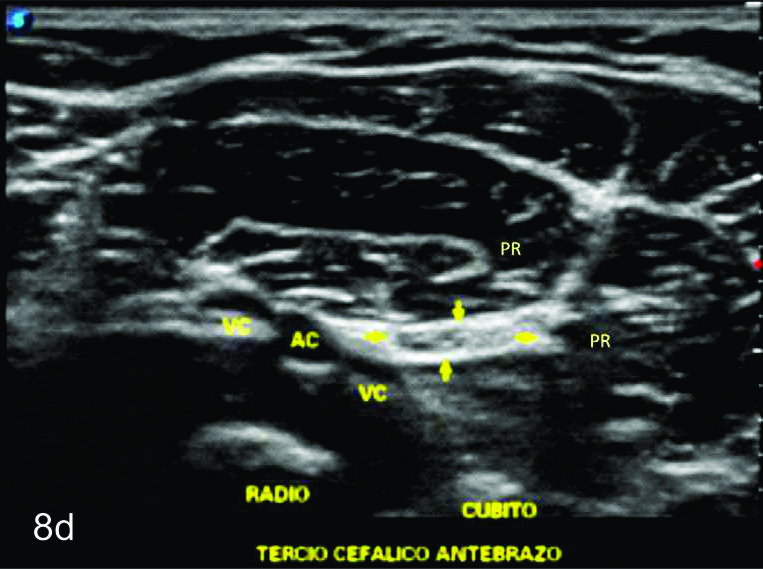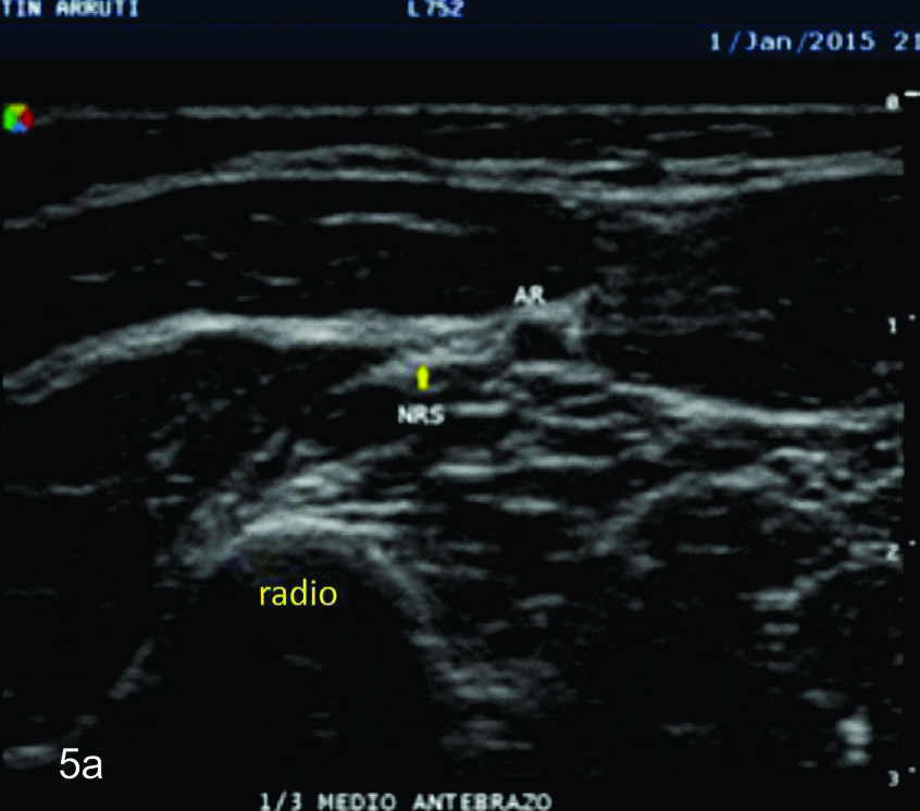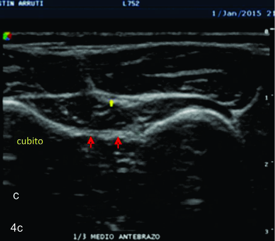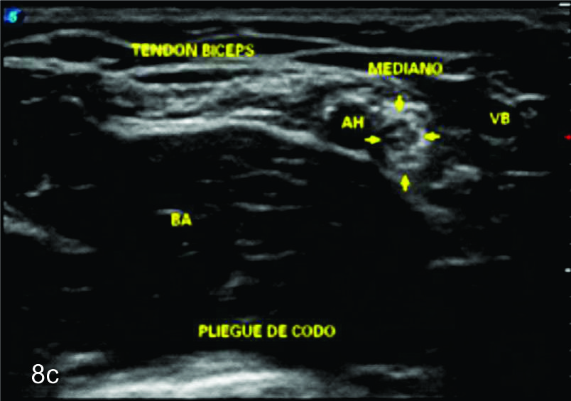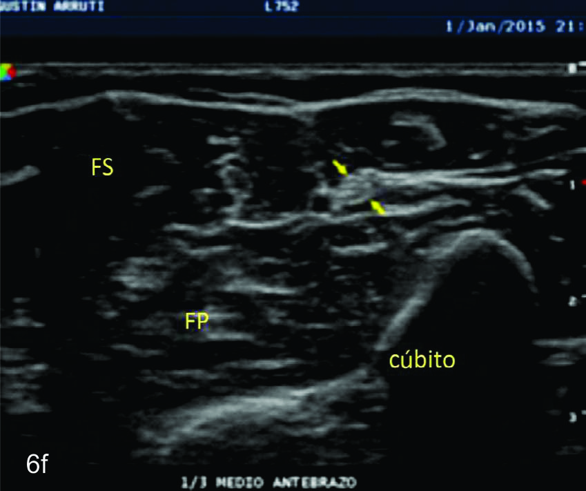 en sus dos ramas terminales a nivel del codo. Se identifica