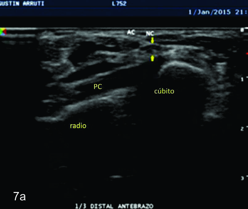 mismo señalado por flechas amarillas, supinador-