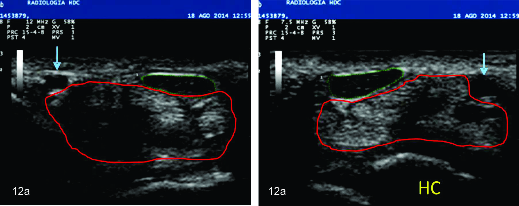Todos las imágenes aquí mostradas son de pacientes vistos en la consulta (Hospital de Clínicas, CASMU, consulta particular) por el autor en el periodo entre el año 2012 y el 2017. En todos ellos el primer estudio de imagen realizado fue la ecografía el cual realizó el diagnóstico.